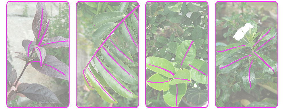 通常从中心线开始绘制每个叶子。以下是查找这些线的一些示例: