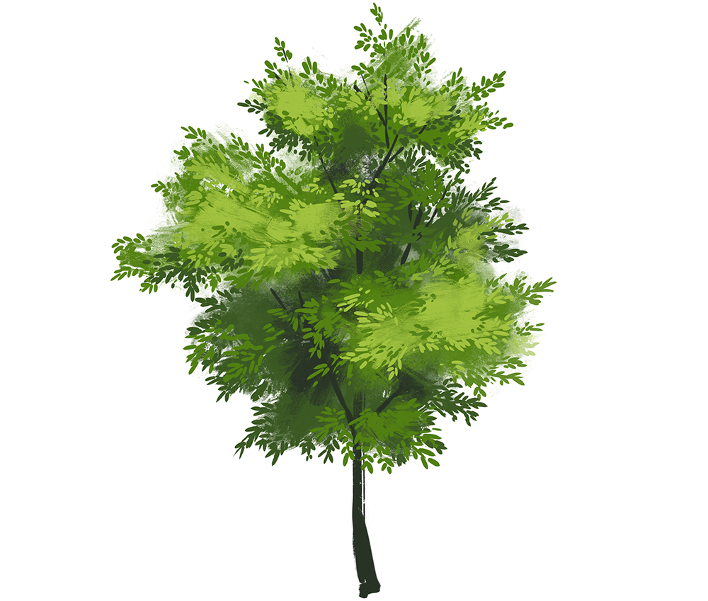- 添加细节。在叶子之间挖了一个洞,在树干上涂了不同的颜色。