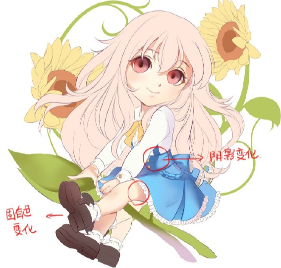 赛璐璐上色的步骤方式都大同小异,风格的不同来自于线条、阴影处理、高光处理..等等这一步的固有色,因为是暖暖的同人,颜色都有参考。只是要注意饱和度、明度都要适中,不要出现过暗、过亮的固有色噢~