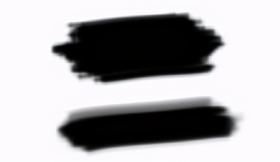 看看水彩笔刷与刚刚制作完成的涂抹工具实际的使用效果(如下图)