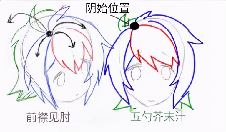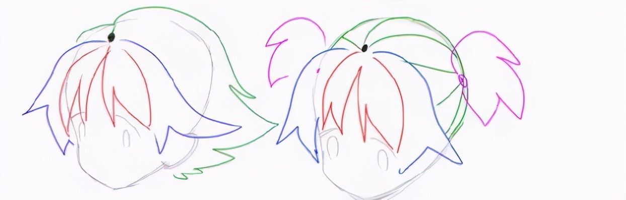 如果是系头发的发型,从结开始重新设置开始位置,只改变因系了而受到影响的头发的流向吧。别忘了按照头的形状画哦。