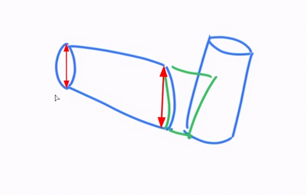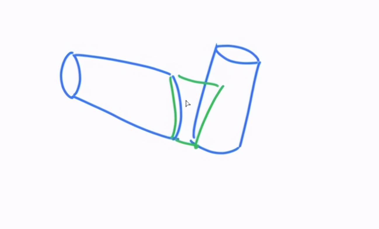 盆骨然后连着我们盆骨,然后画上圆柱形来代表大腿,连接盆骨的地方会比较宽而接近膝关节,圆柱的半径就会变小