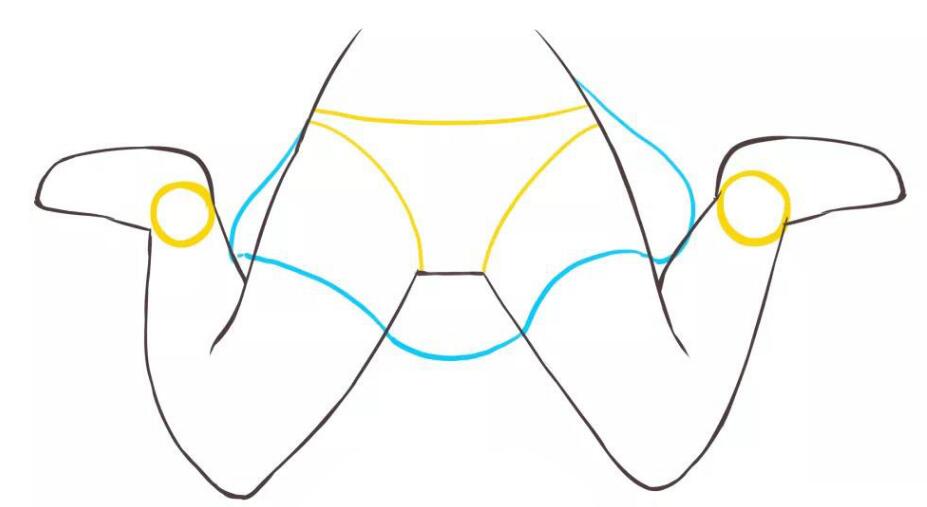 而盆骨则是可以用一个类似于倒梯形的小胖次来进行概括