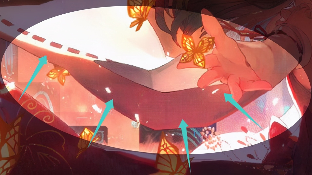 还有袖子的暗部,也是有一个“从亮到暗再到亮”的一个过程。