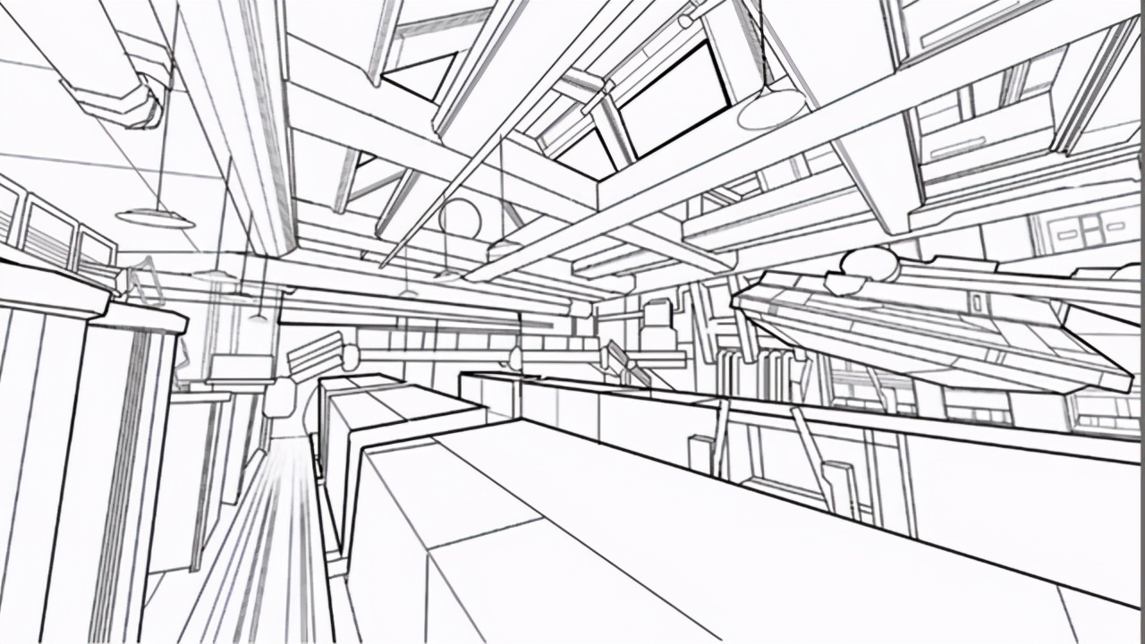图中虽然透视效果做出来了、形体也没太大问题,但这样的画面好看吗?不好看!因为忽略了虚实处理。所以身为画画人,千万不要有【我全要】的心理,毕竟你的作品是要给人看的,一定不能只图自己爽,并不是所有东西都要细细刻画。