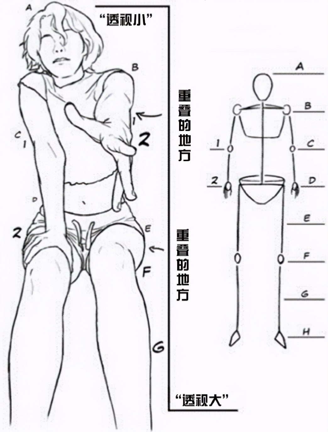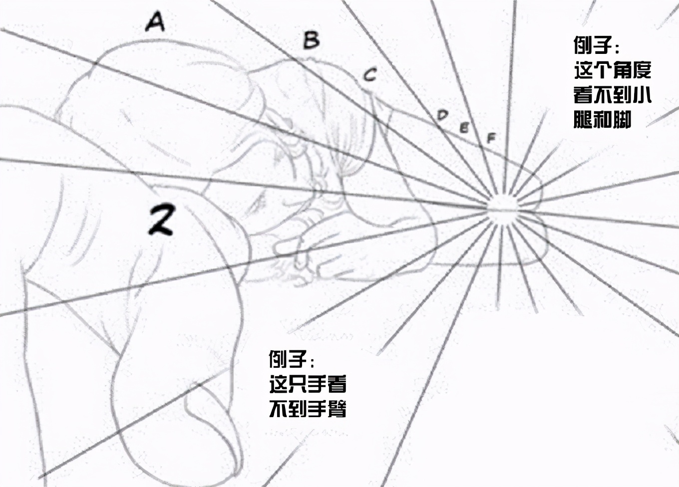 有些身体的部分画透视的时候是和身体另一部分重著,所以不会画出来,下面来介绍一些“身体隐藏部分”