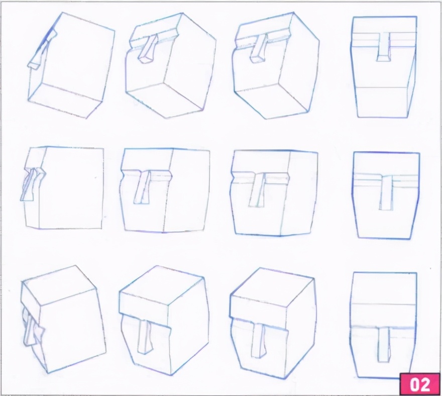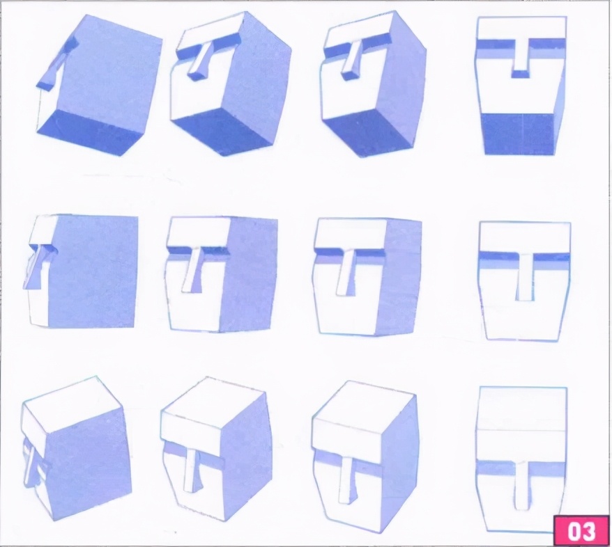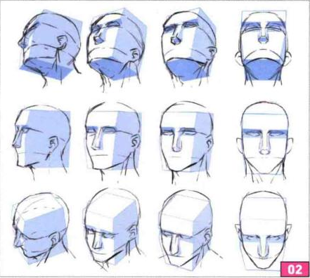 对人物头部的构造掌握得不是很好的画手,可以通过绘制几何体的透视效果来大致把握一下整体的构造。不要把它想得太复杂,漫画的线条就是要简练,只要把握好大致的轮廓就行了。