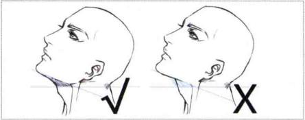 画人物侧面下巴的时候要注意,下巴和脖子连接处的皮肤会随着抬头的动作受到牵扯,不会紧贴着下巴的线条。