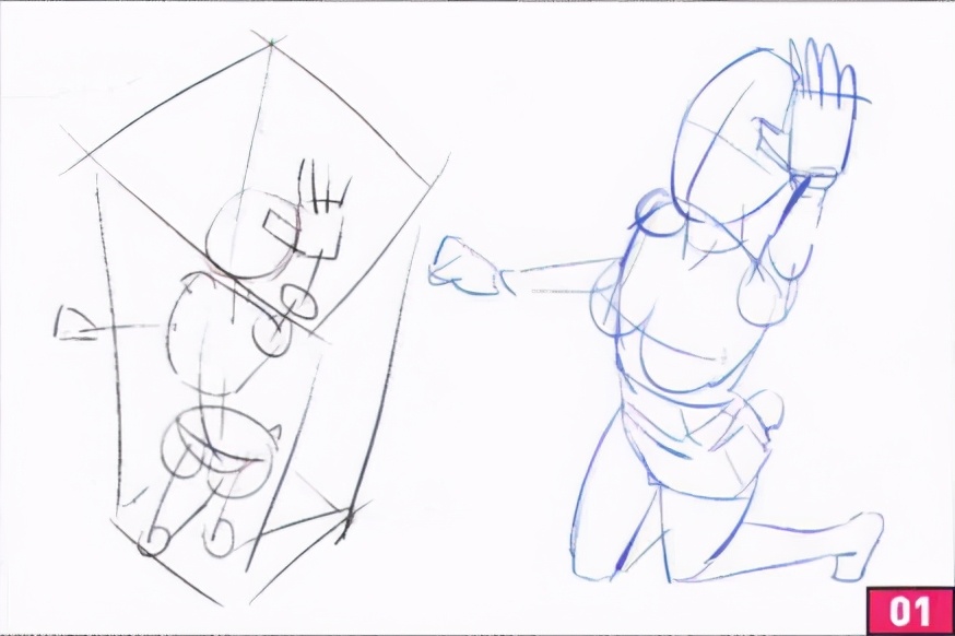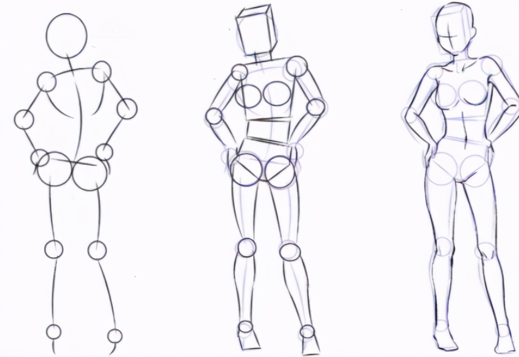 我们把线条几何化的同时,要注意几何物体的透视原理,这样才能把人体的厚度给表现出来。