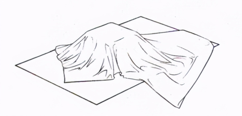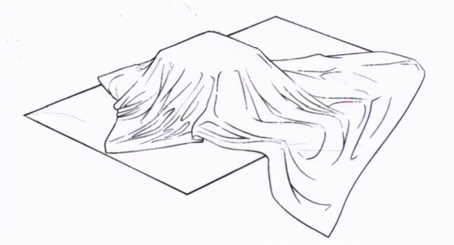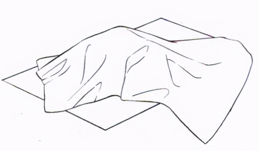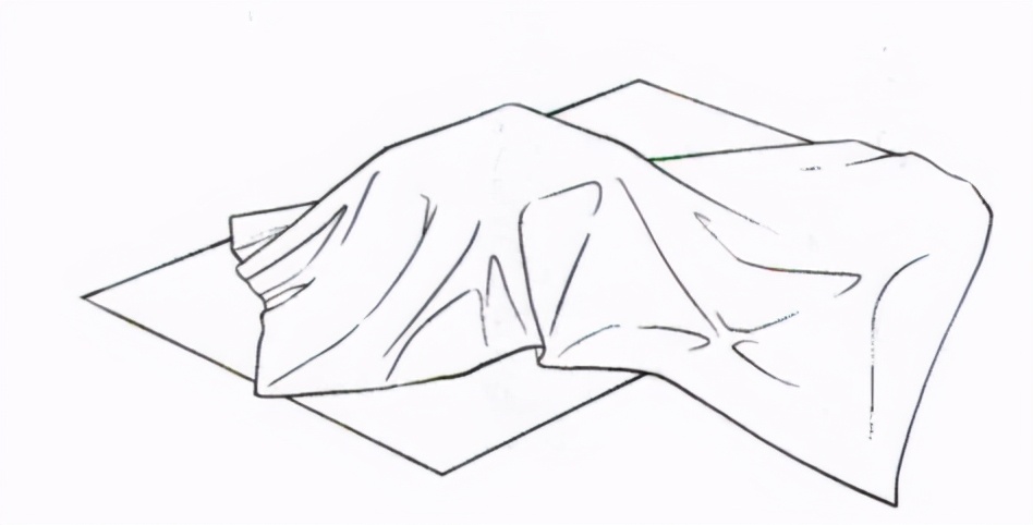 我们把一块布捏住两个角提起来,就可以看到三角褶皱了。