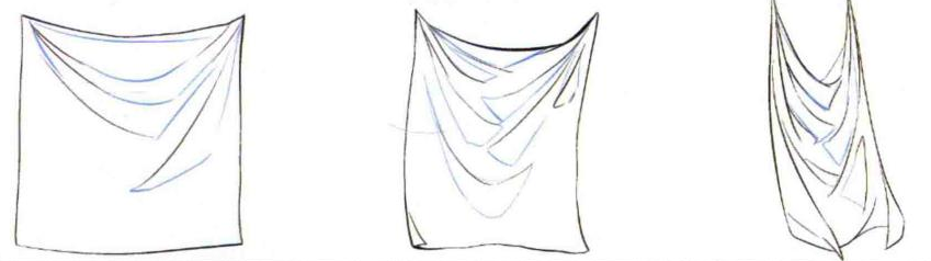我们可以看到不同布的褶皱是不同的。通过布料的褶皱我们就可以看出布料的质地是轻柔的还是厚重的。