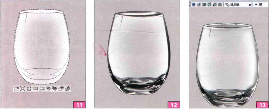 用模糊工具把生硬的阴影线模糊一下,再用橡皮擦工具擦出一些玻璃折射的光。
