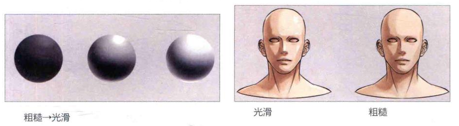 我们前面介绍光影的时候提到过,任何物品都会反光,表面越光滑的物品反射的光就越多,产生的亮点即高光)面积就越大。相反表面越粗糙的物品反射的光就越少。