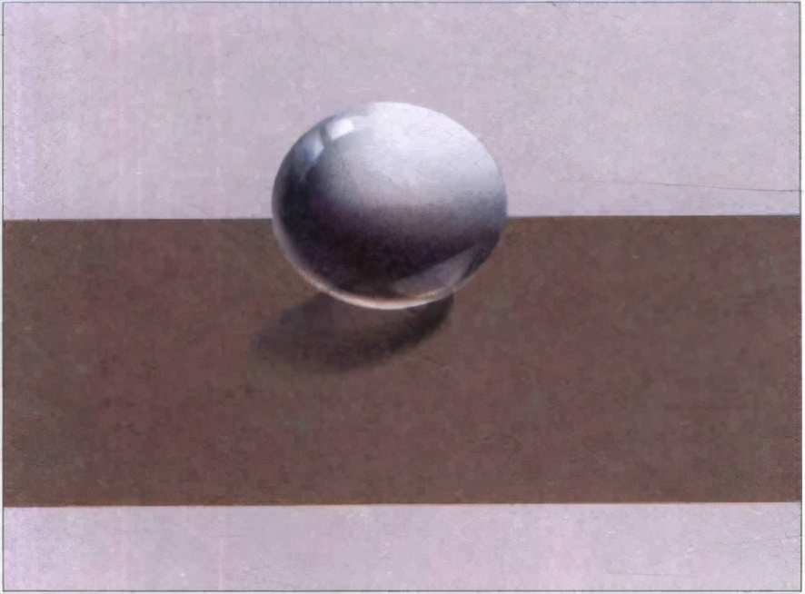 玻璃球的质感是透明的,除了必要的高光以外,还可以透过它看见底部的阴影,还有背景桌面,但是因为折射的关系桌面的边缘会有所变形。