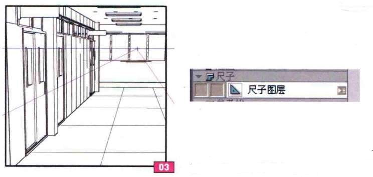 新建一个草稿图层,根据作画内容打好草稿。CS的透视尺可以自动吸附画笔,所以你永远不用担心会画歪线条。