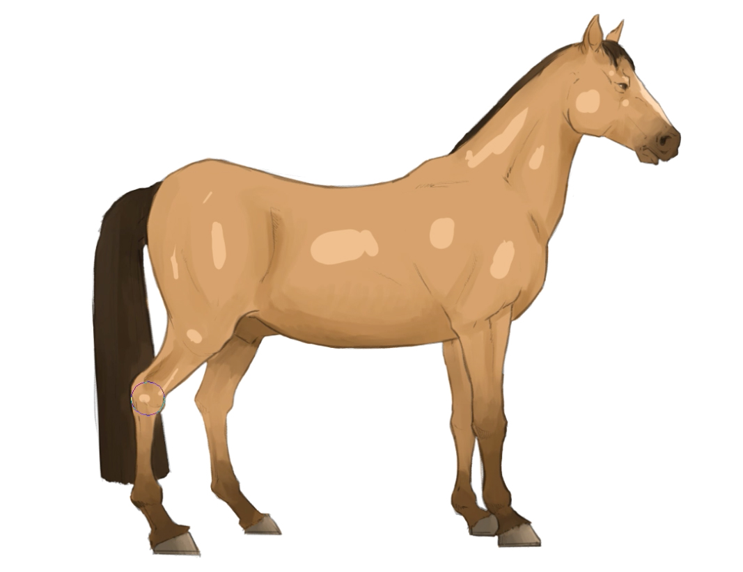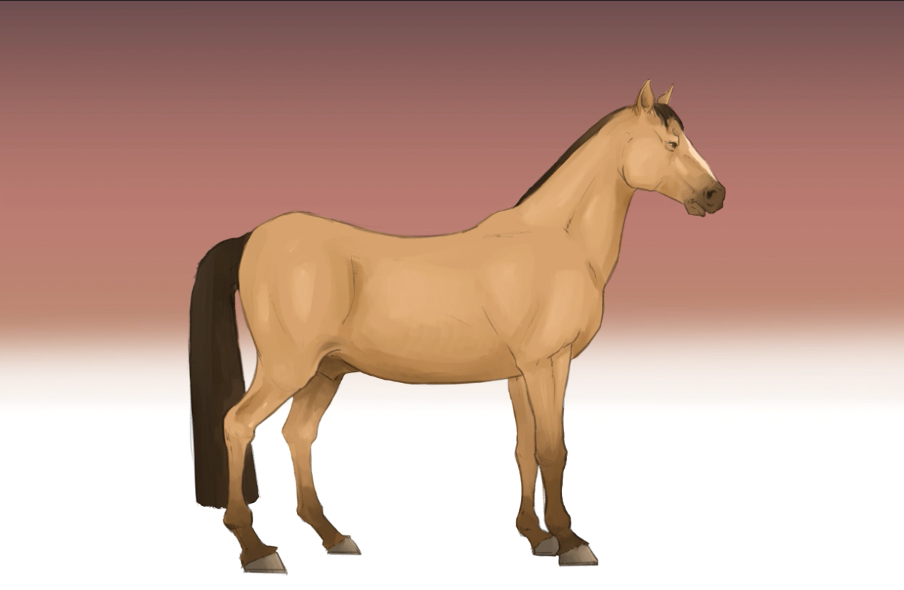 现在,为马的毛发选择所需的颜色。我选择了较轻的土色色调,但可以基于先前选择的参照写出不同的颜色。使用“油漆桶”工具应用颜色。