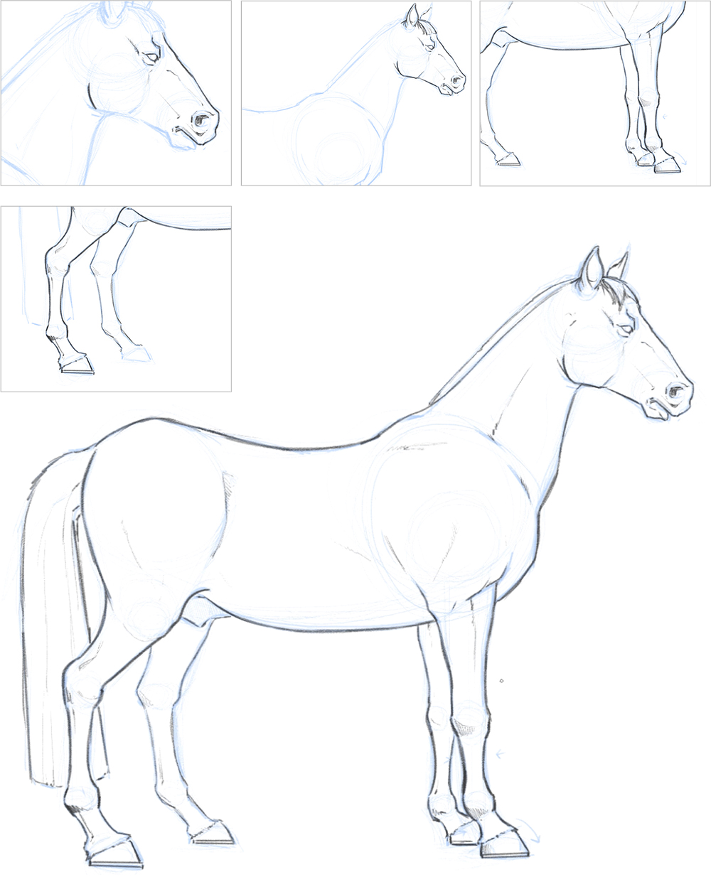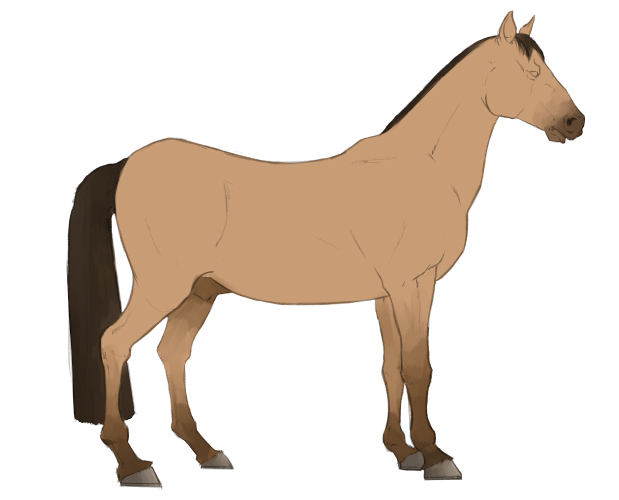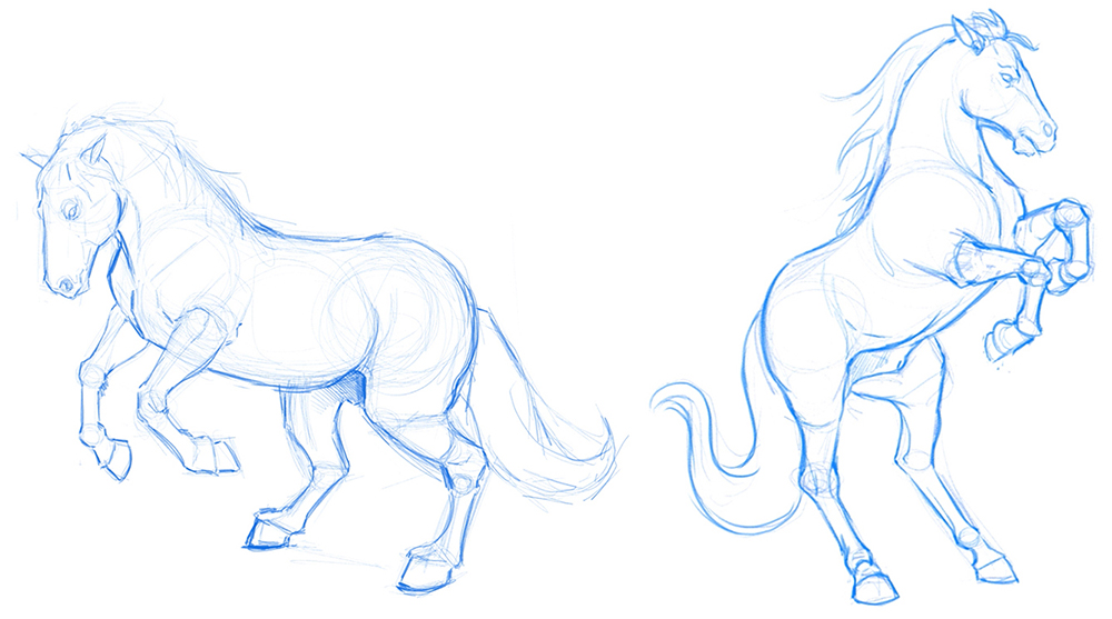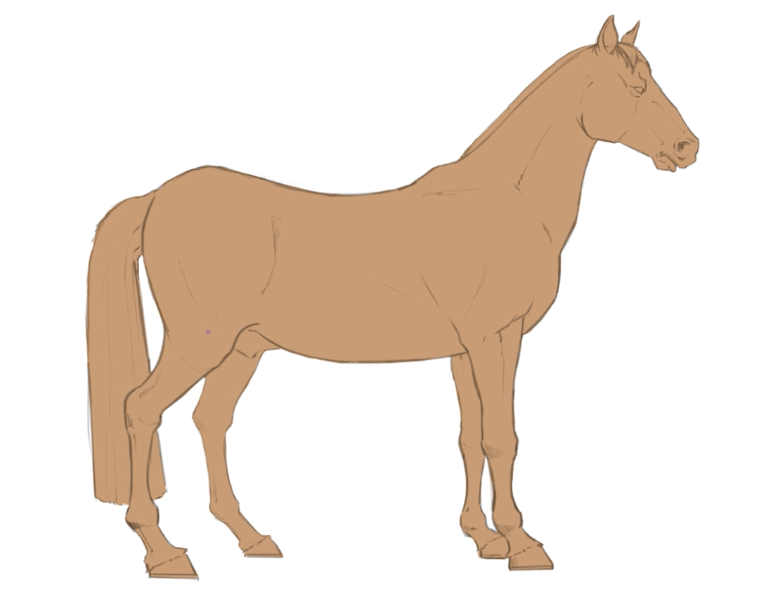 根据这些准则,我将展示从不同角度绘制的马姿势。