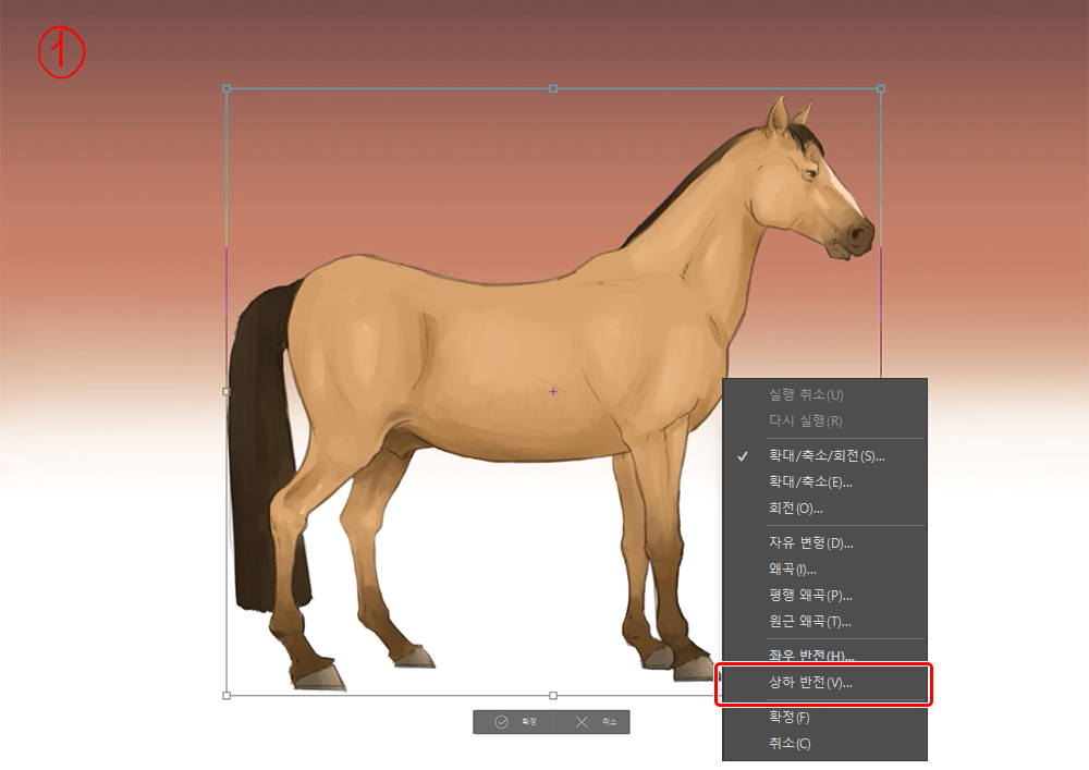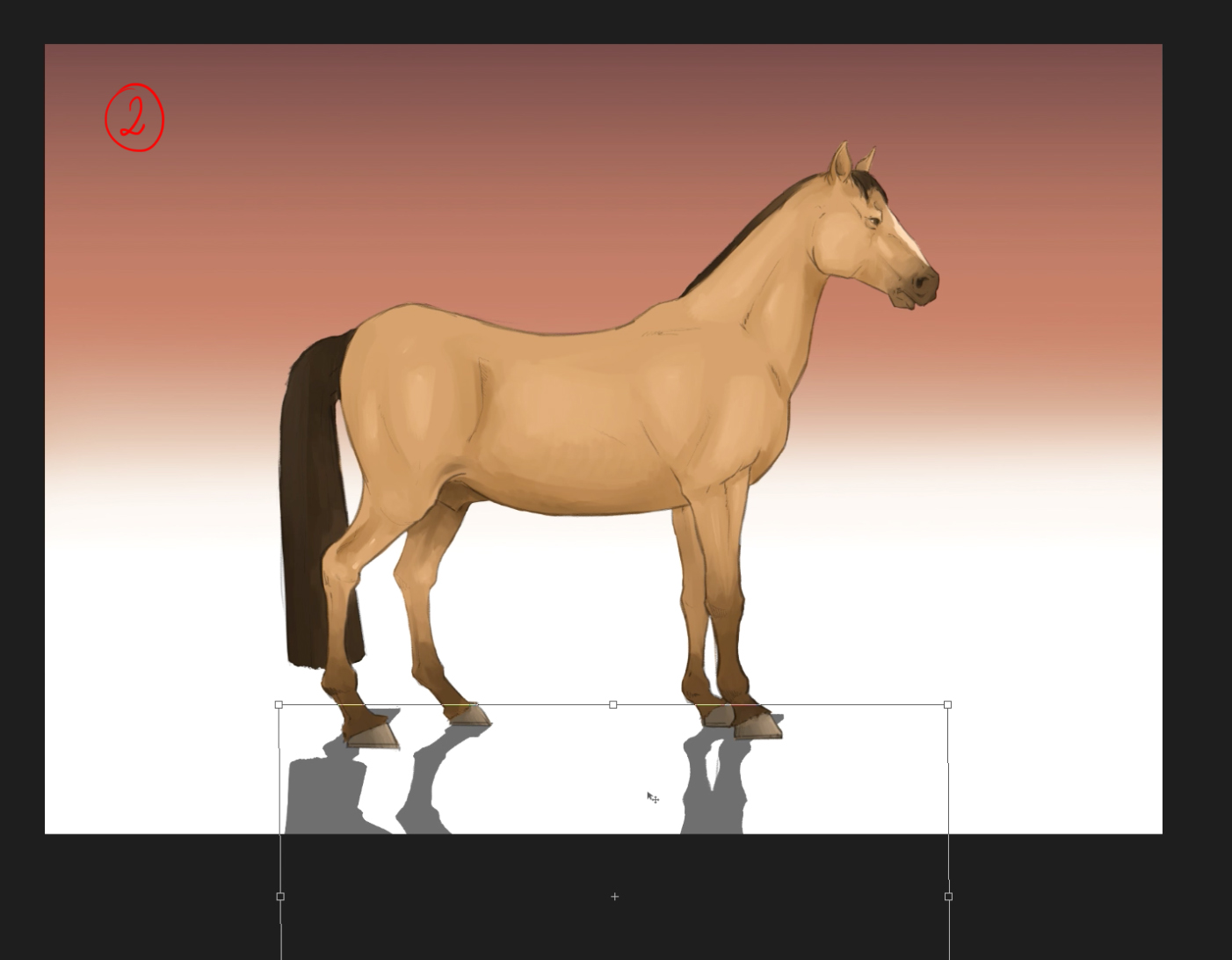 接下来,您将创建铸造阴影,即马照亮地面的阴影,为图像增加重量和真实感。这里是在步骤6中复制的灰色层很有用的地方。变换此图层(编辑>转换),然后右键单击所选内容。上下翻转选择(1)。