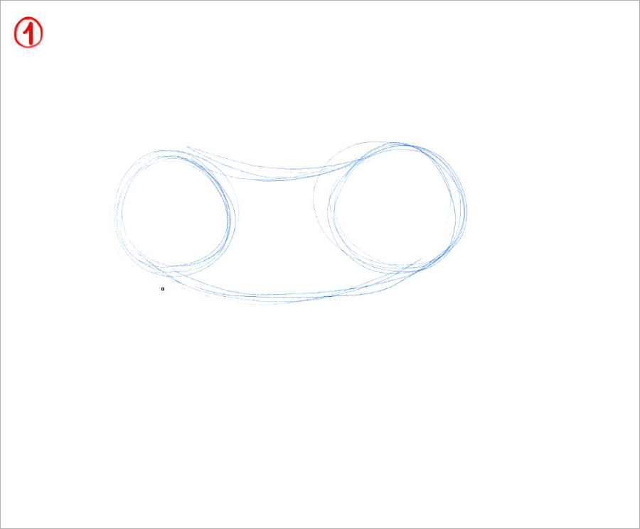 首先,创建两个大致相同的圆,这些圆由两条类似于豆状的水平线(1)组成。