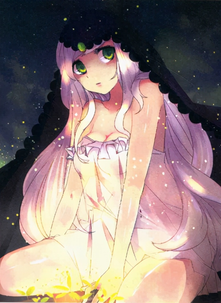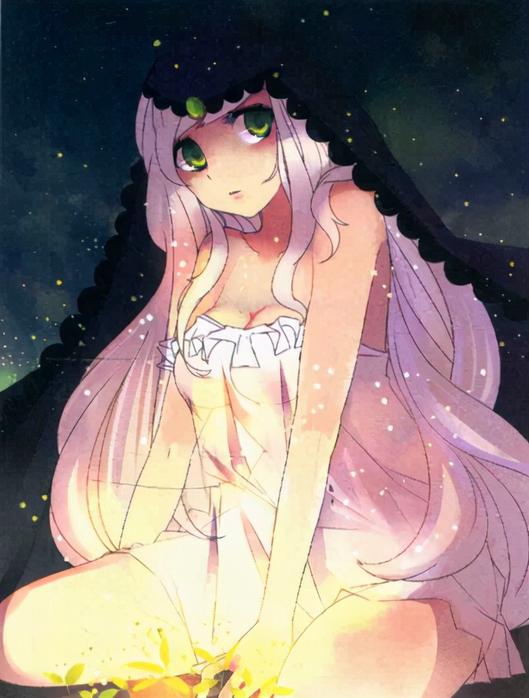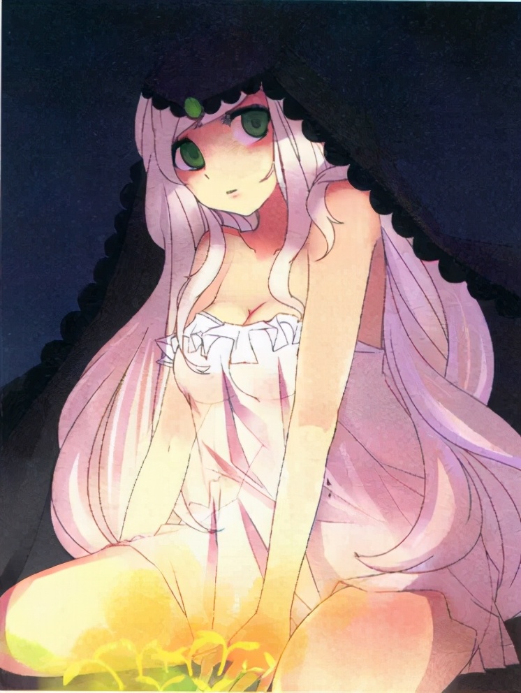 教程中的人物处在一个色调比较暗 的环境中,光源来源于人物下方那几株可以发光的植物,所以在光影的刻画上一定要注意人物光影的细节。