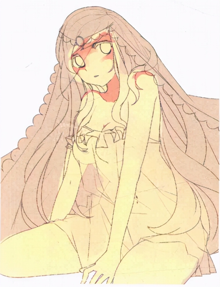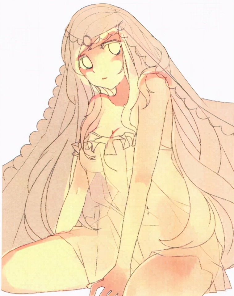 对人物皮肤的颜色进行大面积上色,被衣服遮挡的皮肤部分使用水彩笔工具上色,使皮肤颜色和底色融合,产生模糊感。