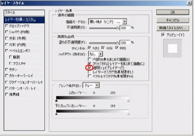 将步界3中也用的图层效果更改为减淡(线性加法。但是,这样下去颜色会变淡,所以请取消选中透明形状国层的复选框。