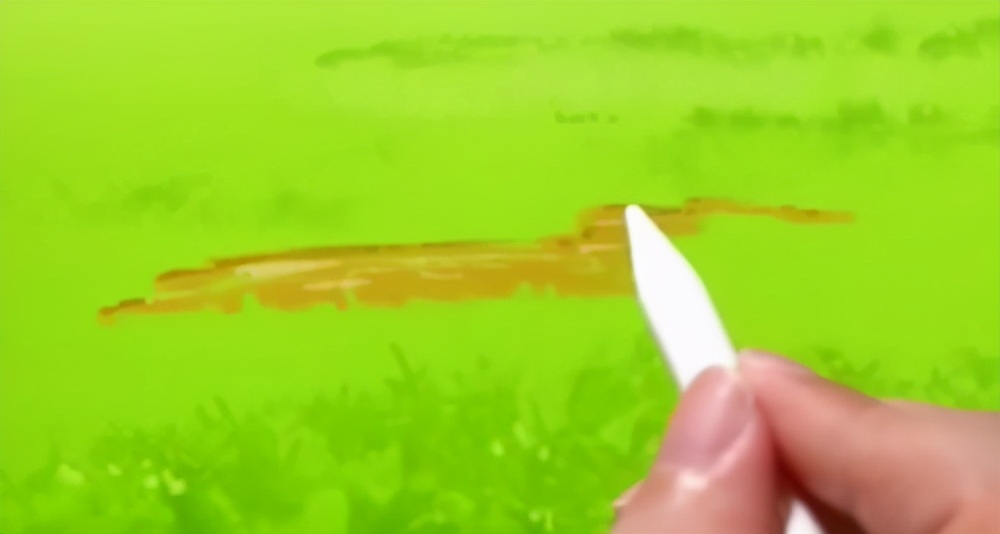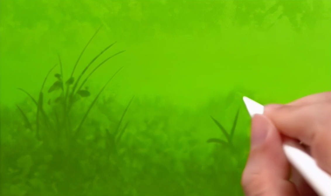 即使没有画出草,也可以长一些草看起来很自然。和以前一样,让我们在后面画一些点。如果画得太远,看起来会很不自然,所以要小心。