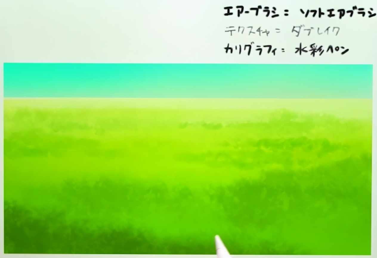 就像将其绘制为荒地一样,请使用喷枪>软刷将其全部涂成绿色。我对图层应用了alpha锁定来保护透明区域。