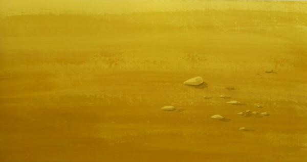 减少笔刷的不透明度,并用稍微深一些的颜色绘制卵石的深色区域。调整了明亮区域的颜色。