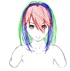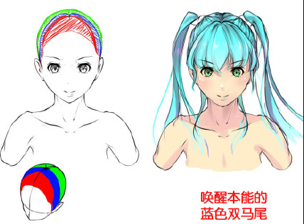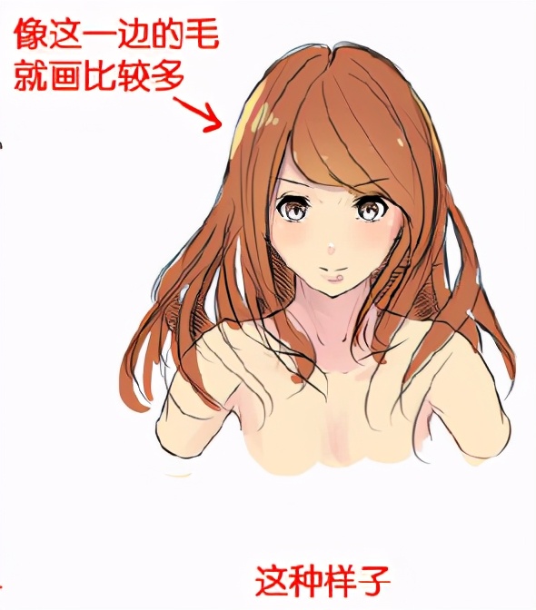 说的详细点,按前发、侧发、后发的划分来考虑,对不同部位的走向做出些改变,部位分界线上的头发的线稍微粗一些,这样就能很清楚地识别头发是从什么地方长出来的