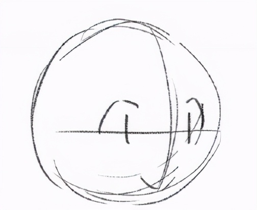 先画脸的参考线,圆加上十字线,然后画上眼睛和嘴(虽然嘴会擦掉)