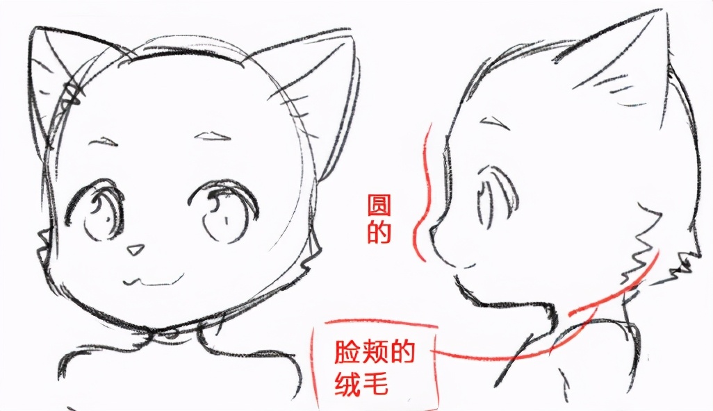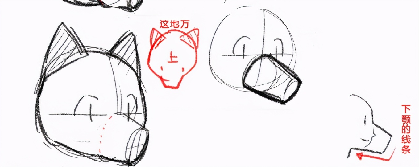 吻部和脸接触的部分擦掉在头顶用三角画上耳朵的原型