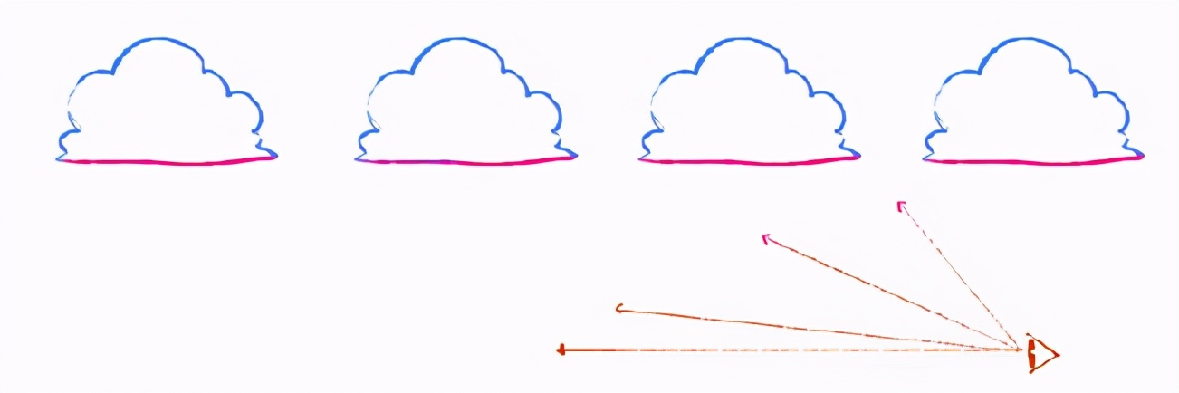 近处的云会更多地看到底部,远处的云则是侧面更多底部少