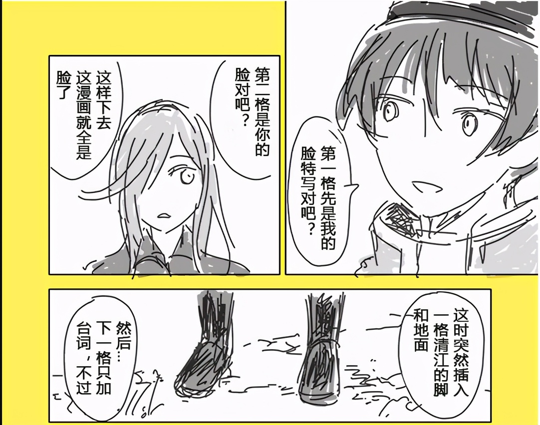 一页上只要有一格是脚踩地的,就能让这页整个变得美观!(就算脸部特写的格子很多也很难让人觉得这漫画全是脸)