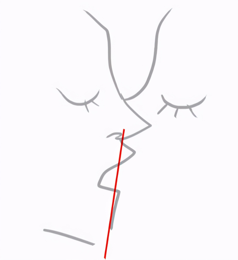 接下来要画一个嘴唇交错的经典接吻动作。正常情况下鼻子会因为碰到对方的脸颊有点变形,但这个教程里让我忽略这点,着重于嘴唇画法。