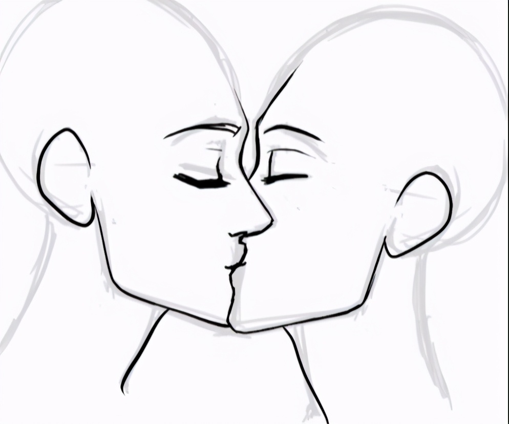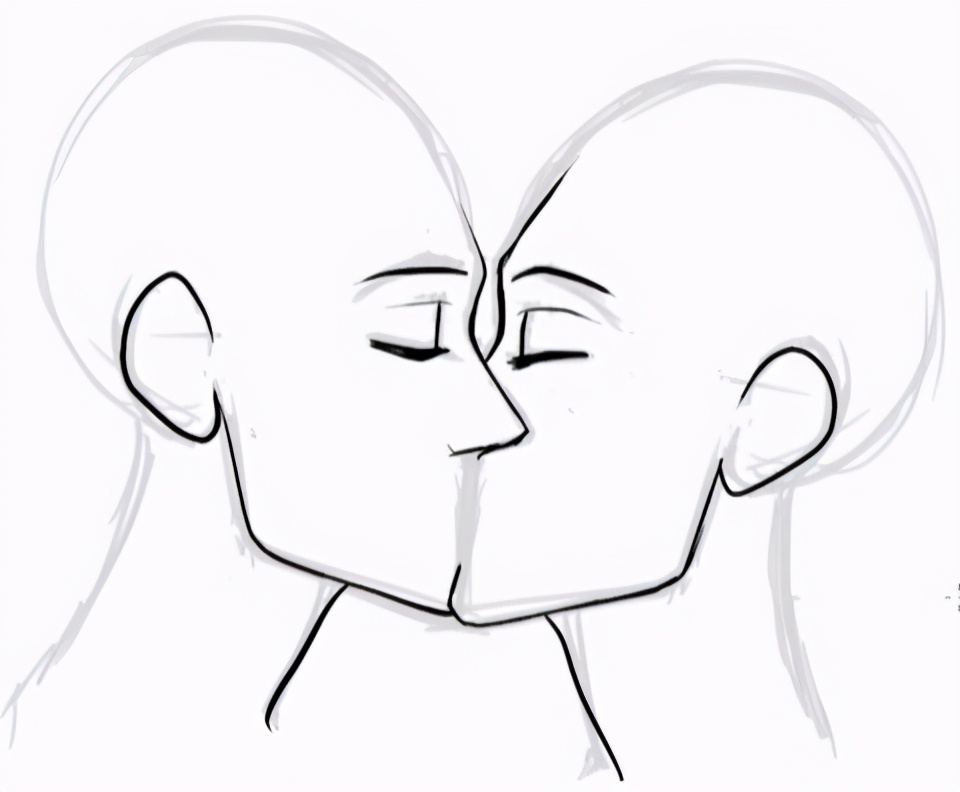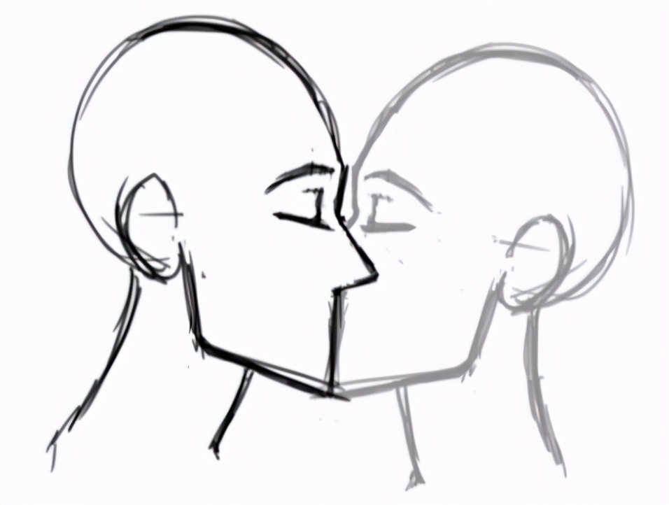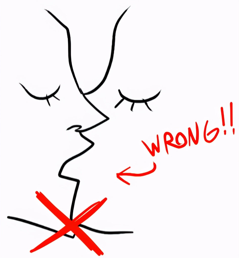很多时候我看到别人画接吻会用这样的交错方式。在我看来,这样既丑也不现实,一点也不浪漫。