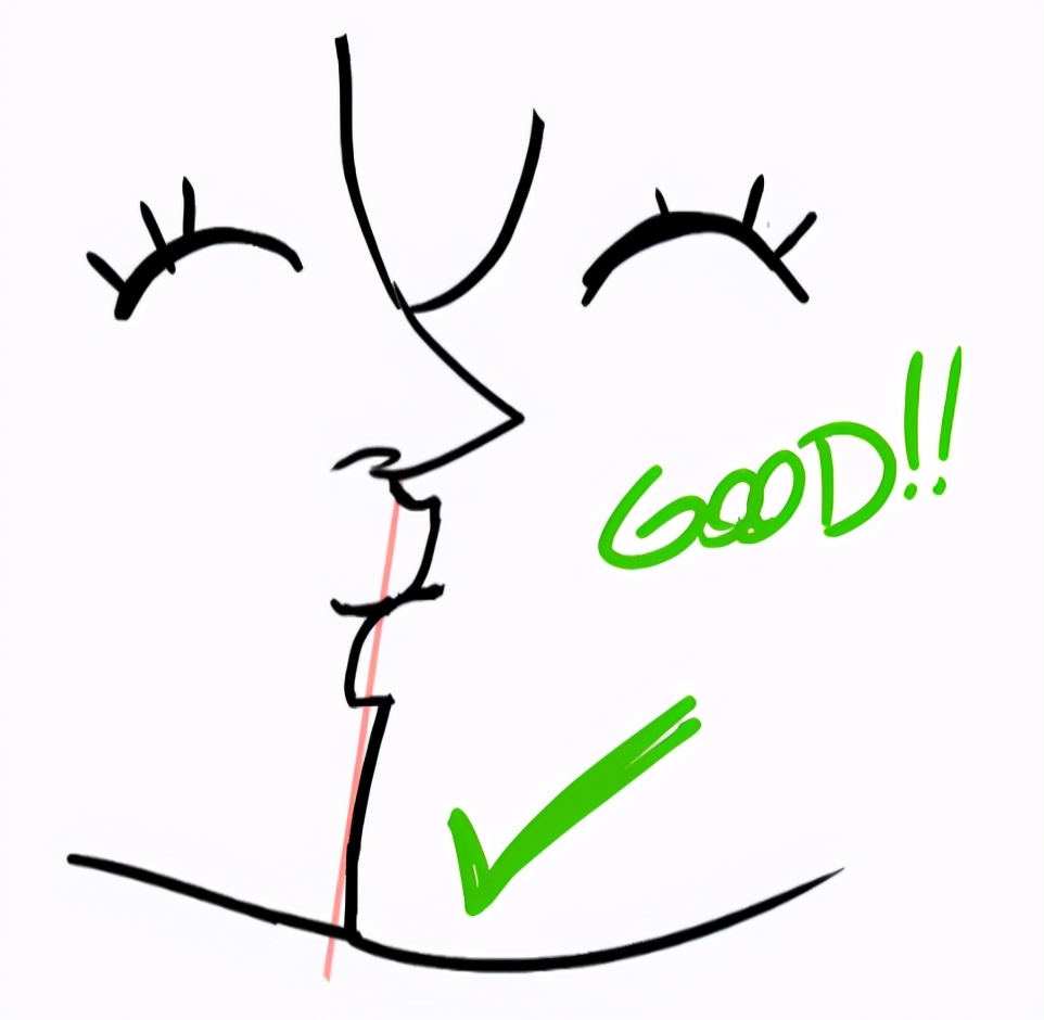注意我把右边的脑袋倾斜了一点让嘴部能贴合在一起,同时前额是不能碰到的。