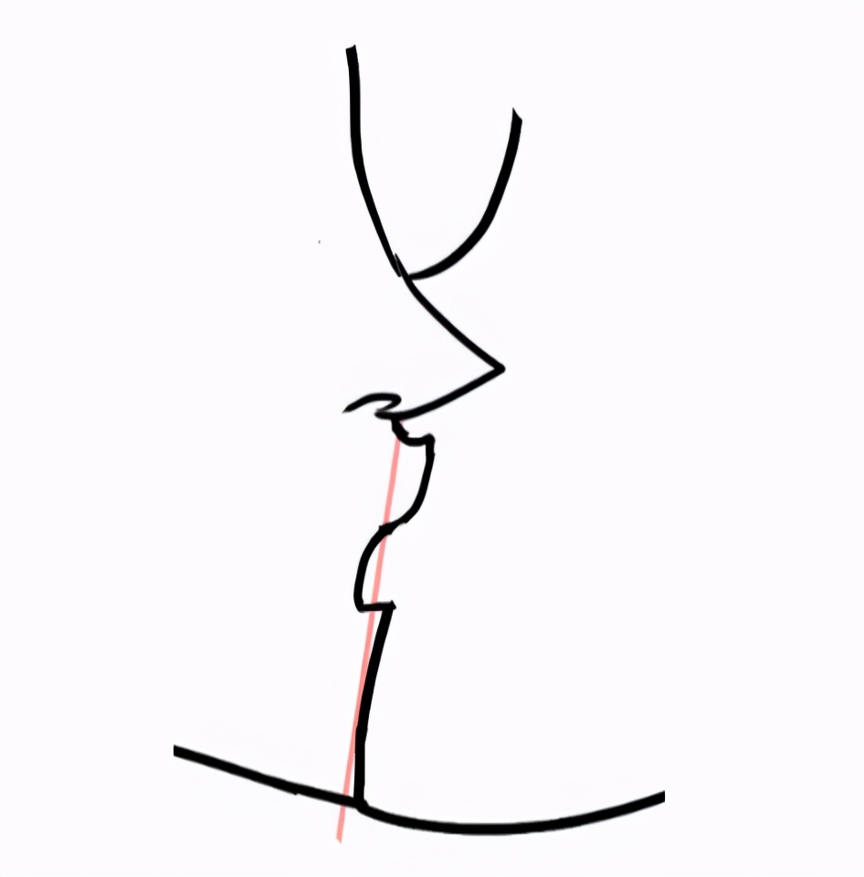 必须要记住人的皮肤是柔软的,接触到另一表面时容易变形,特别是嘴唇。接吻时嘴唇不仅会相互压迫,它们的后面还有坚硬的牙齿。这里的红线代表牙齿的大致位置。