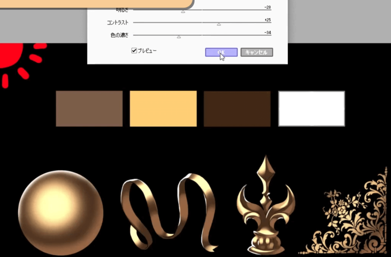 “亮度/对比度”可以稍微增加亮度和对比度,并降低色彩深度。这将从黄金变成白银。