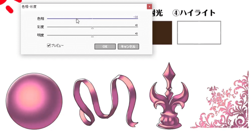 我从原始金色调整了“色相”,并将其更改为金属粉红色。
