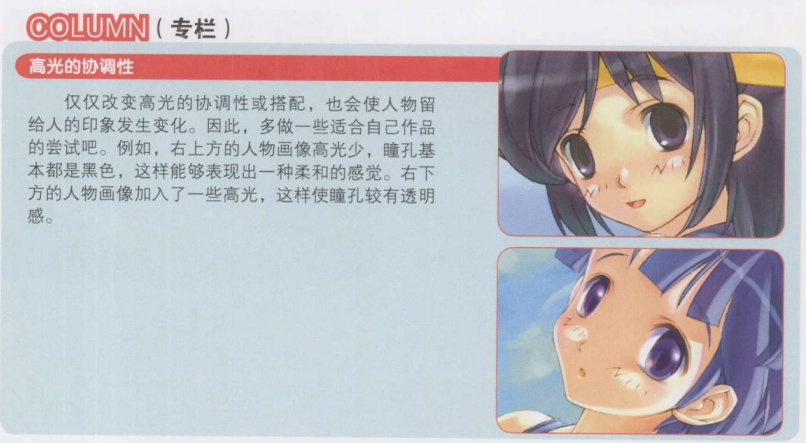 使用[画笔工具]来画,但是要在瞳孔的上部画一个较大的高光,并在瞳孔下部最亮的地方加一个小小的高光点。关于瞳孔高光的大小或形状等方面,请根据作者的喜好来添加。