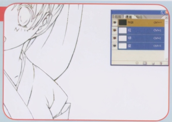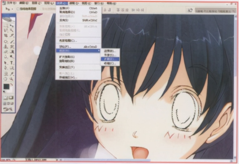 为了在绘制彩色部分时更容易操作,首先来绘制瞳孔的轮廓。用[工具箱]- [魔术棒工具]选取线条画的瞳孔部分和睫毛部分。如果直接这样填充瞳孔,线条的周围会出现缝隙,所以要选择[选择] - +[修改]中的[扩展],将选区扩展1像素左右。接着,选择[图层] -→[新建]→[图层],新建图层。选择新建图层,使用[编辑] -→[填充],就可以将瞳孔填充为黑色。