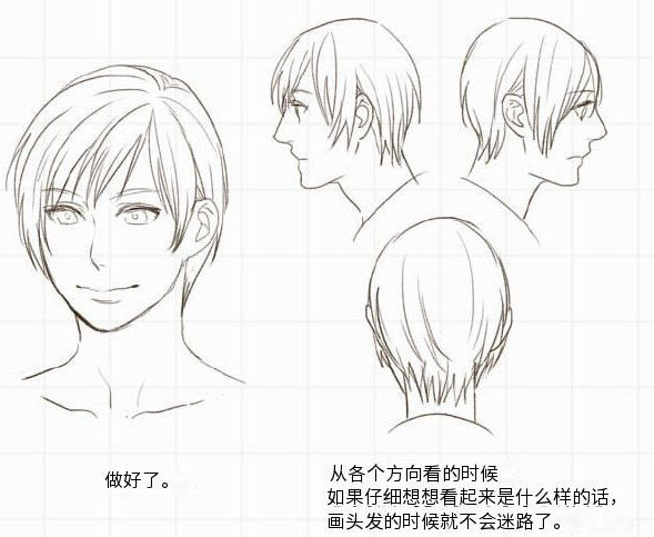 后面的头发也画了。虽说有分寸并不一定必须从划分开始划线,因为这里有区分,所以我觉得差不多能明白就好了。