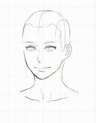 首先想象头部的形状。眼睛大概在脸中间的高度。