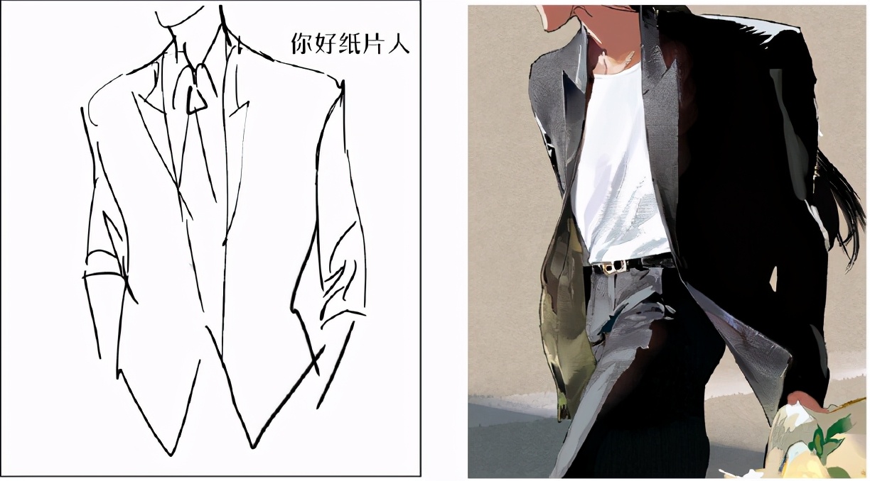 不知道各位在画画的时候有没有遇到这种画东西过于概念和死板的时候,拿西服来举例子,有时候了解西服的构造但是画出来很僵硬。