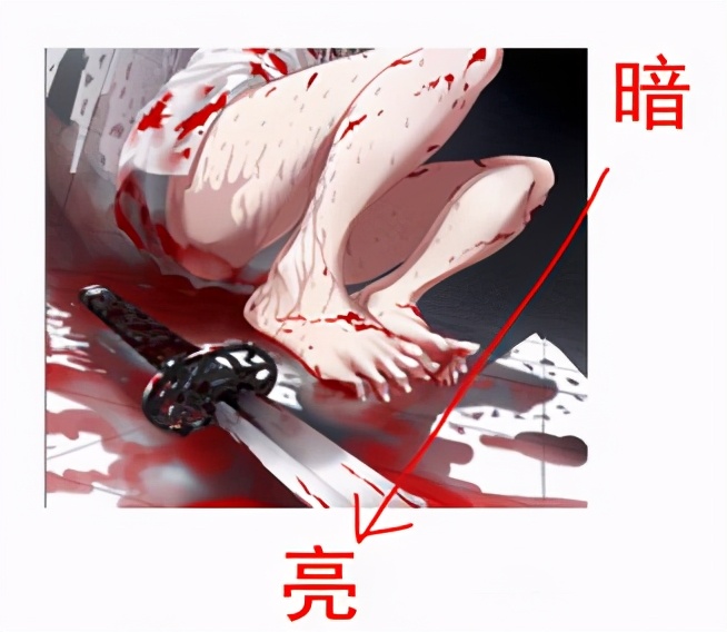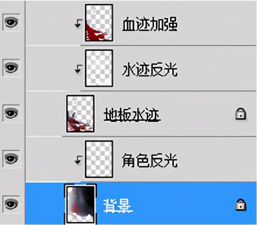 血迹使用鲜红色,皮肤水迹使用暗部的颜色,图层效果使用“正片叠底”