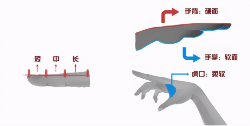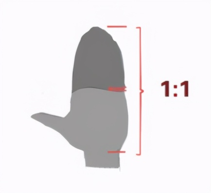 1、画手之前先要知道手的基本比例,手指与手掌的长度比约等于1:1