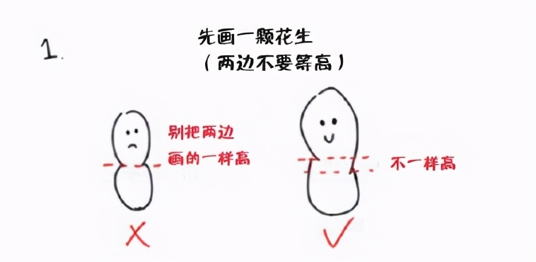 1、先画一颗花生(两边不要等高)