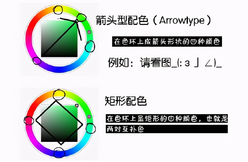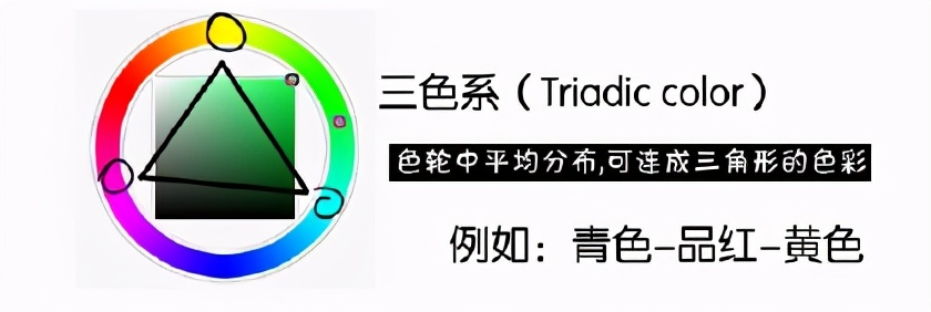 色轮中平均分布,可连成三角形的色彩