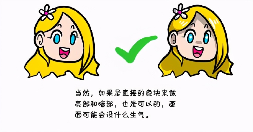 当然,如果是直接的色块来傲亮部和喑部,也是可以的,画面可能会没什么生气。